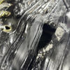 " Your hidden Devil" Jacket is a custom-made couture statement piece designed to challenge traditional ideas of luxury through radical material experimentation. Created using recycled polypropylene bags hand-painted in black, recycled bicycle inner tubes, and broken metal chains, this dress explores whether discarded materials can coexist in a powerful, wearable form.